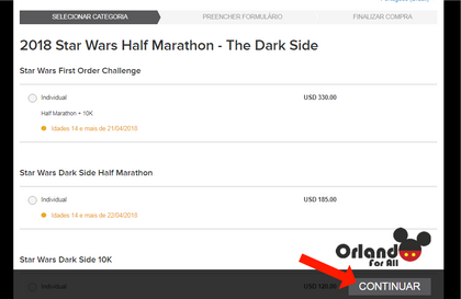 Essa parte final é feita através do site Active, e a própria página da Run Disney vai te redirecionar. Indico fazer seu cadastro na Active antes da abertura das inscrições, pois assim você ganhará tempo. Para ter acesso, clique aqui.