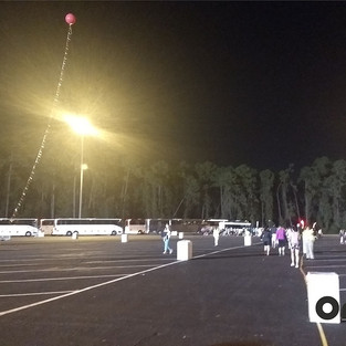 Se tudo isso não bastasse, o trajeto foi a cereja do bolo. Largamos nas rodovias de acesso aos parques, e boa parte do percurso foi por ali. Depois fomos contornando um prédio que eu conhecia, mas não daquele angulo... Era a "Twilight Tower Of Terror", o hotel mal assombrado do parque Hollywood Studios. Entramos no parque pela lateral dessa atração. O parque todo iluminado só para nós, meu Deus, que emoção!