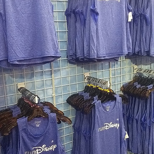 Bib em mãos, chegamos a um pavilhão muito grande, repleto de produtos Disney separados por corredores que correspondiam a cada categoria de corrida. Isso mesmo, um corredor de produtos correspondente à distância que você escolheu. Os itens vão desde casacos, camisetas, até imãs de geladeiras, bonés, garrafas, chaveiros...